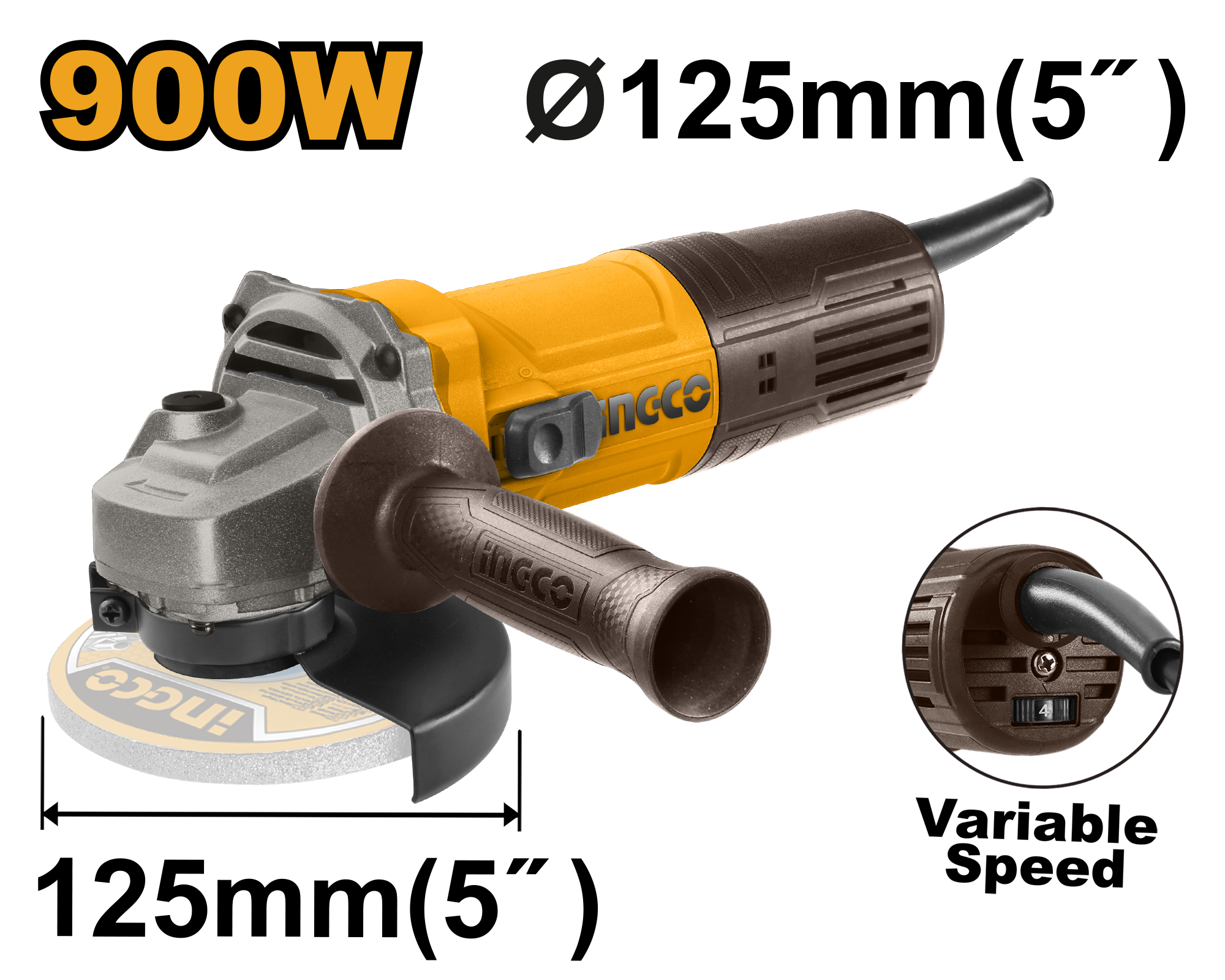 Amoladora Angular Industrial 900w 125mm Ingco + Accesorios