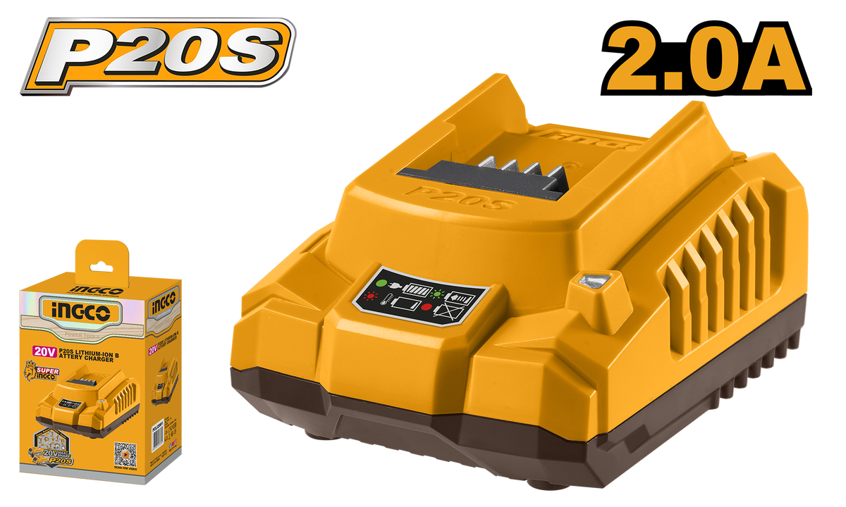 El Cargador de Batería 20V 2.0Ah Power Ion Litio de la línea P20s de Ingco es la solución ideal para mantener tus herramientas eléctricas siempre listas para usar.