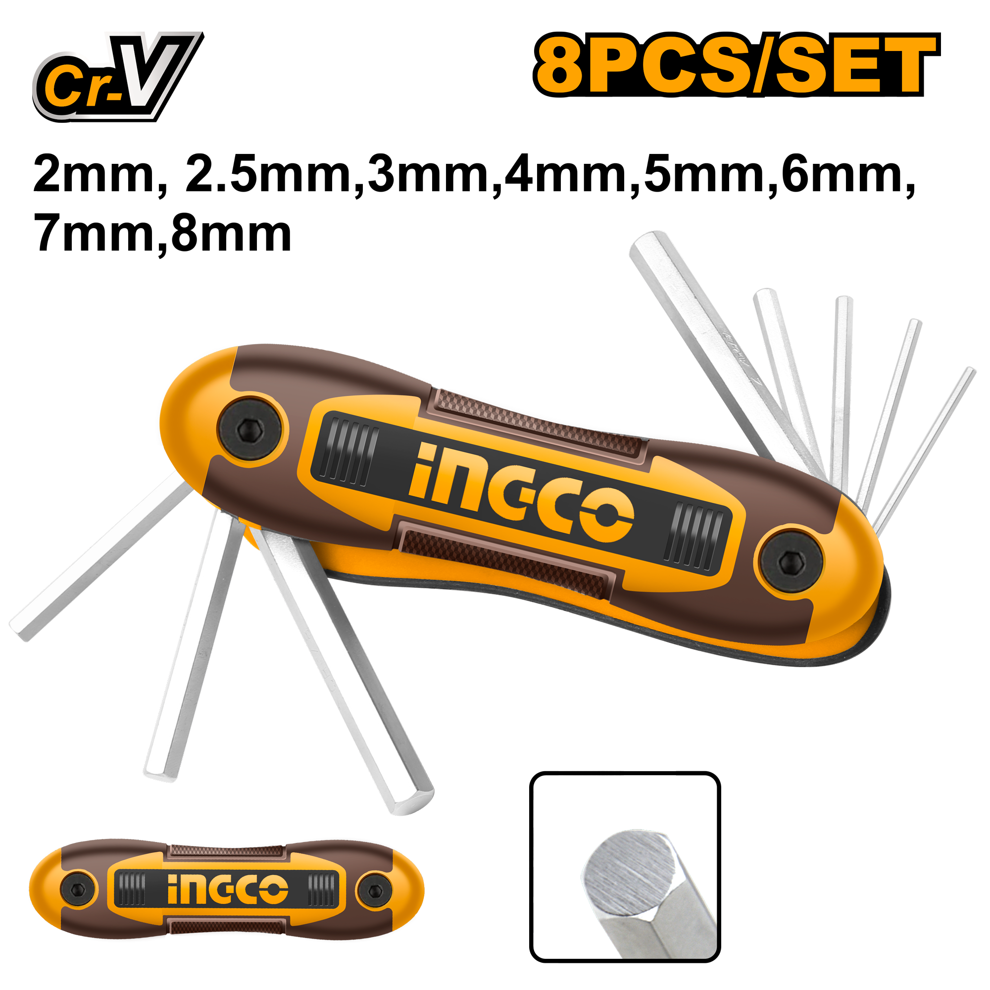 JUEGO 8 LLAVES ALLEN DE BOLSILLO 2MM A 8MM • INGCO