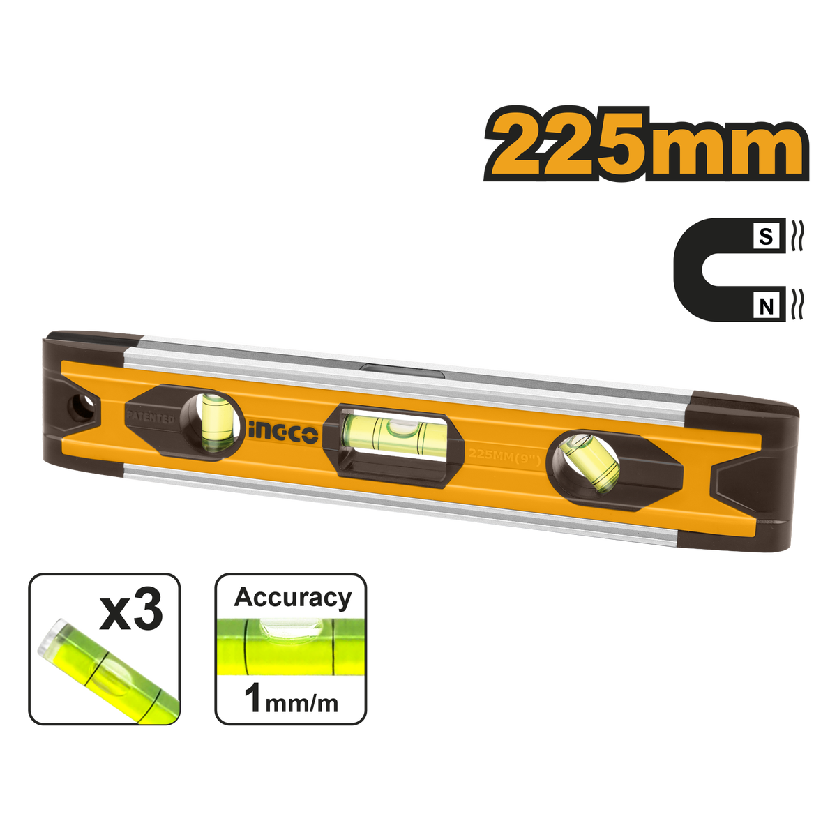 NIVEL TORPEDO MAGNETICO 22.5 CM • INGCO