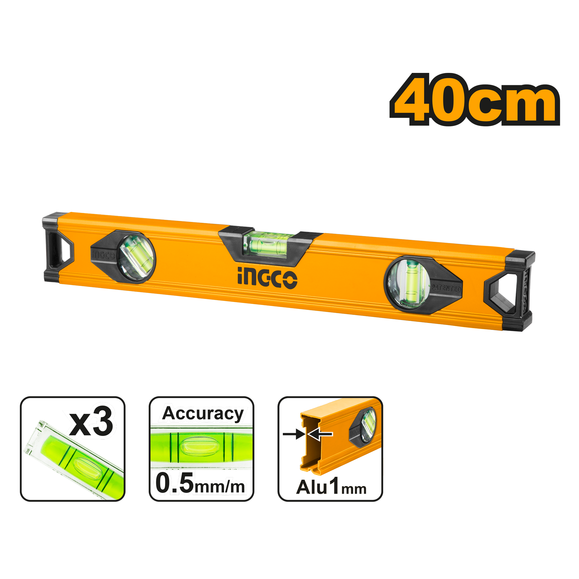 NIVEL ALUMINIO 40 CM. 2 BURBUJAS • INGCO
