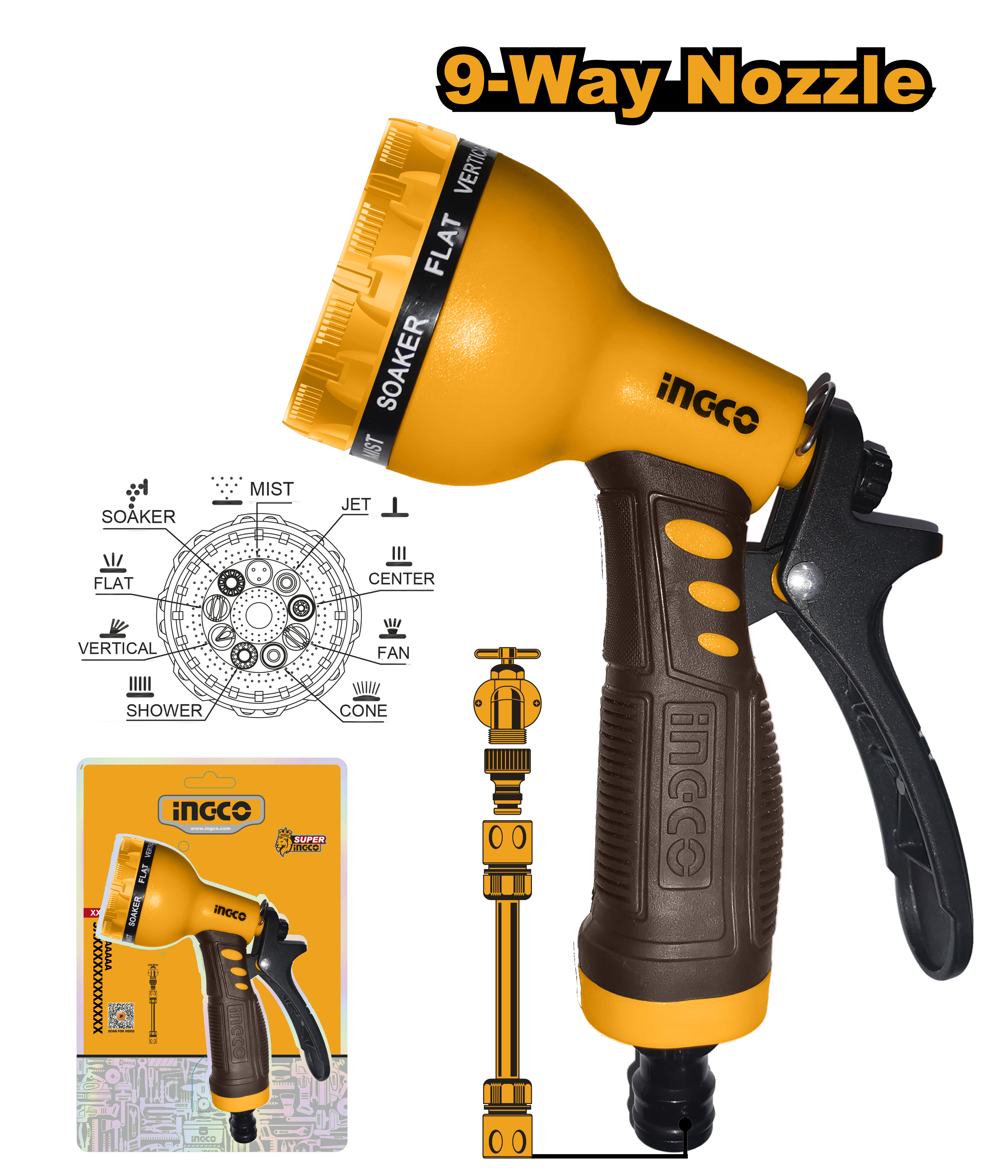 PISTOLA DE RIEGO PLÁSTICA 9 FUNCIONES • INGCO