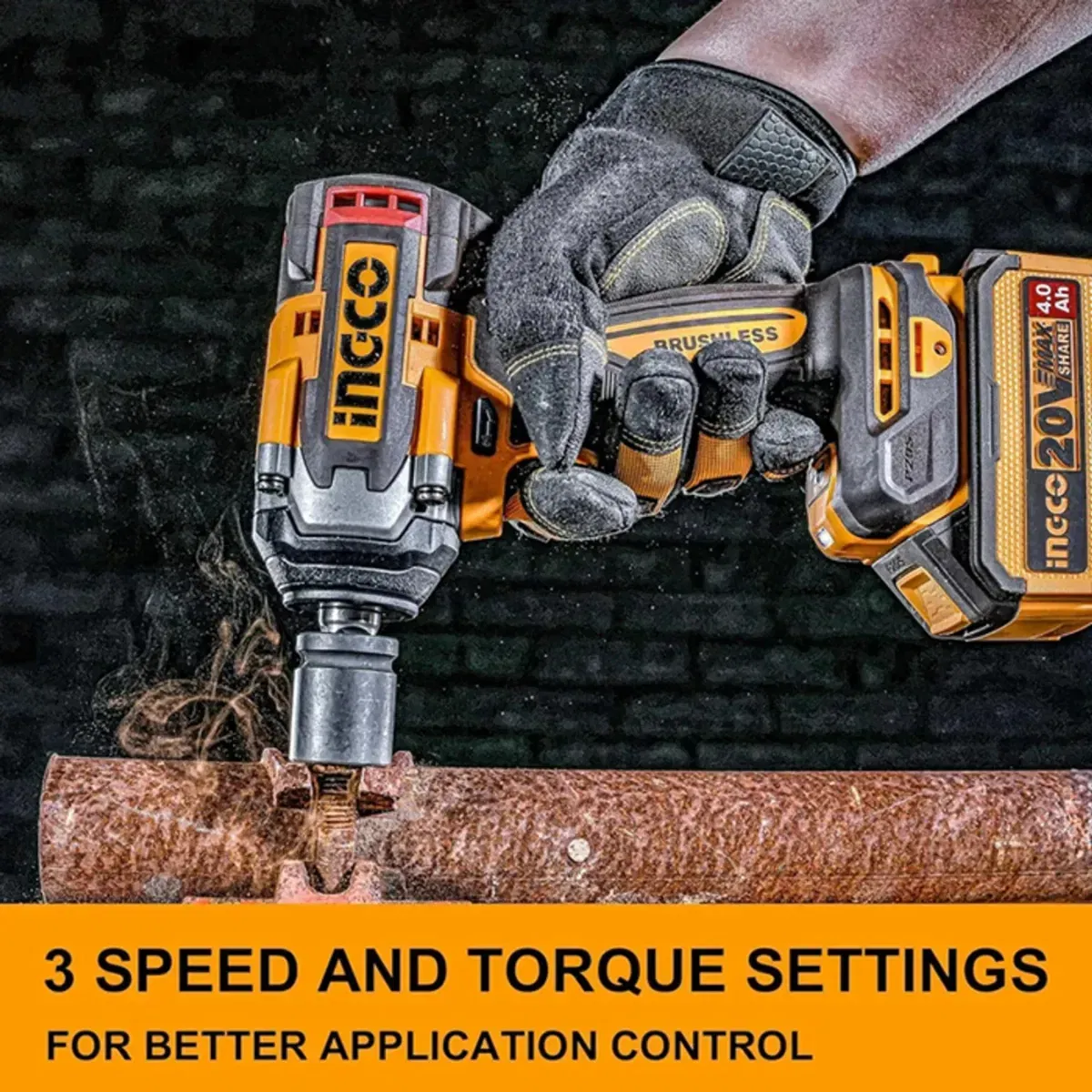 LLAVE DE IMPACTO 20V ENC.1/2" BRUSHLESS 400NM - SIN BAT. NI Carg • INGCO