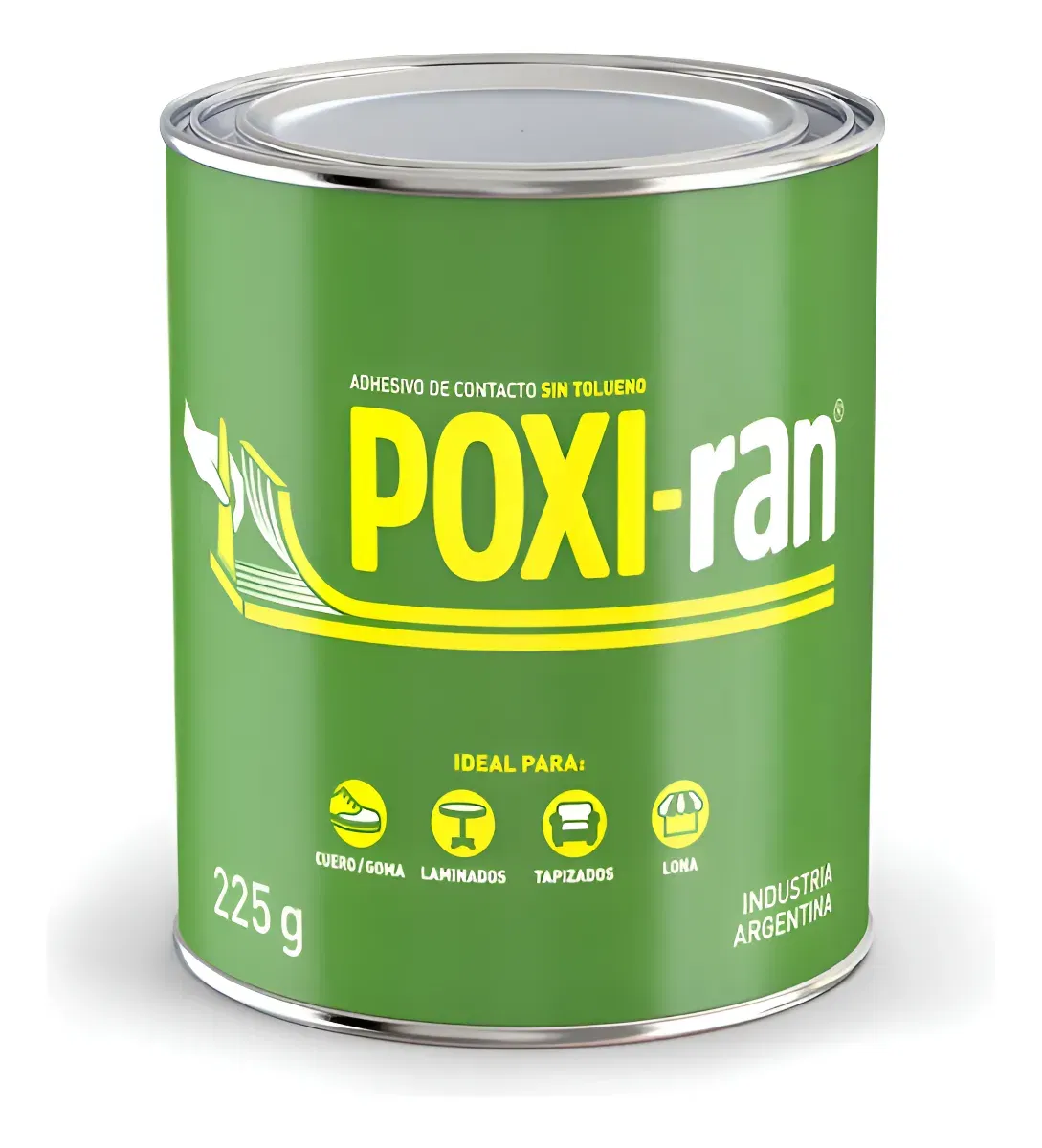 POXI-RAN® ADHESIVO DE CONTACTOMarca POXI-RAN® - Lata 225gDESCRIPCIÓN:• POXI-RAN® es un adhesivo de contacto para uso doméstico, ideal para unir materiales flexibles.MATERIALES:• Apto para adherir cuero, tela y goma.